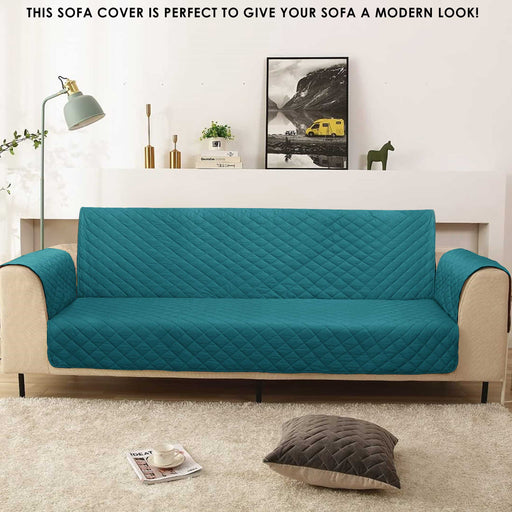 View full detailsAqua Leaf Quilted Sofa Cover Set