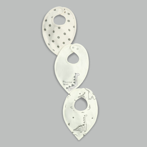 AΒ 3-piece bib set made from soft, absorbent cotton featuring playful grey polka dots, βMy Little Dinoβ print, and fun dinosaur sketches. Designed i...