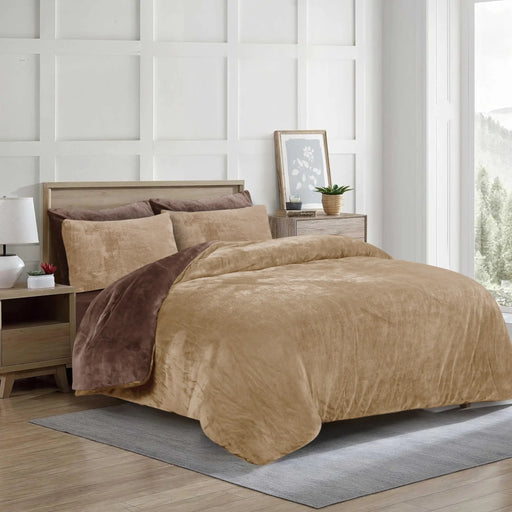 View full detailsFleece Bedsheet and Reversible Razaye 6pc Set Chocolate Brown-Sand