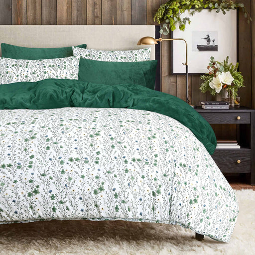 This elegant bedding ensemble features a soft white base adorned with delicate green and floral vines, evoking a fresh and soothing ambience. The r...