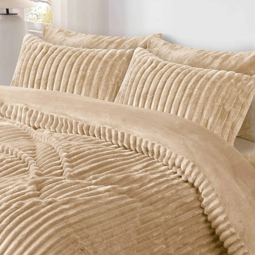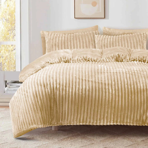 View full detailsJacquard Stripe Flannel Fleece 6pc Razaye Set-Sand