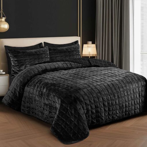 View full detailsLuxury Quilted Fleece 6pc Bedding Set-Jet Black