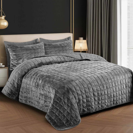 View full detailsLuxury Quilted Fleece 6pc Bedding Set-Grey