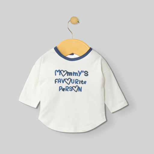 A sweet two-piece outfit featuring a cream top with “Mommy’s Favorite Person” lettering and soft blue trousers. Made from gentle, breathable cotton...