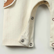 Dress your little one in comfort and charm with this cozy ribbed cotton romper in a soft off-white shade. Designed with brown-tone patch pockets, each featuring a playful sticker- one with a smiling face, this romper adds a cute and whimsical touch to your babyβs everyday wardrobe. This comfy one-piece features adorable bear face and paw patch prints on both sides β designed in a fun, sticker-style look for a playful touch. A must-have for animal lovers and baby photo ops, this outfit combines warmth, charm, and convenience in one lovable design.