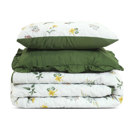 Arrival of warmer days with the Verdant Bloom Bedspread. Inspired by the quiet beauty of a spring garden, this set features a dainty wildflower pri...