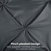 This is a luxurious pin tuck comforter bedding set, featuring a modern yet elegant ruched tufted design. The soft folds and gathered accents create a subtle starburst pattern across the fabric, adding texture and dimension to your bedroom. Crafted from smooth, breathable microfiber, it ensures comfort while enhancing visual appeal. Perfect for minimalist, or contemporary bedroom decor.