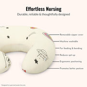 A baby nursing pillow is a special type of pillow designed to help mothers their babies comfortably and correctly. It is usually shaped like a crescent moon. This design helps to reduce strain on the mother's arms and back, making it easier to hold the baby for extended periods of time.