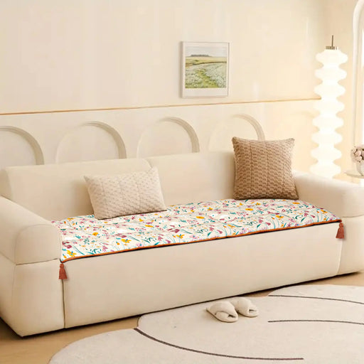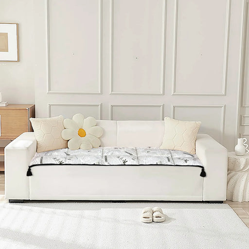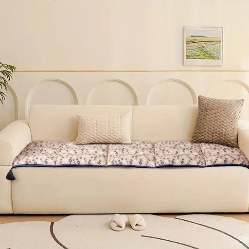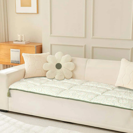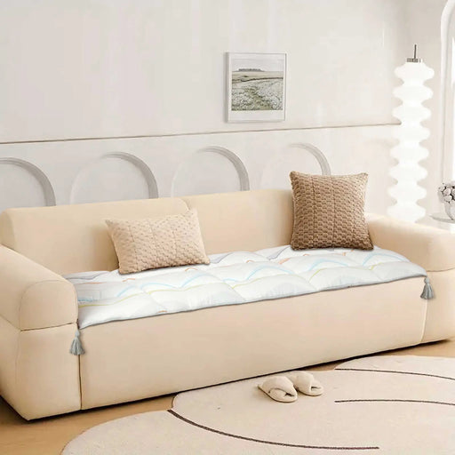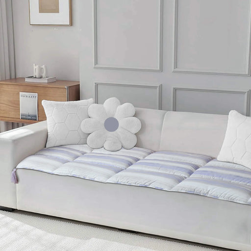 The sofa topper in your image features a modern, cozy design with a quilted surface. The fabric has a soft, matte texture and is patterned with sle...