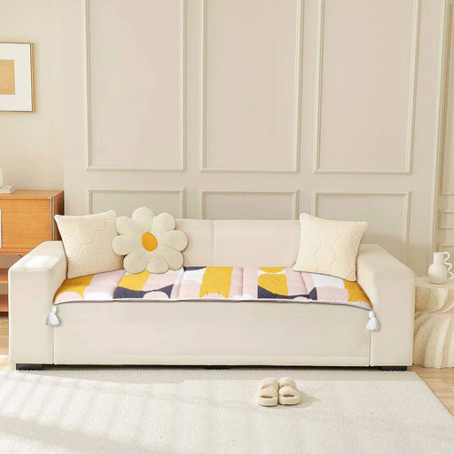 Elevate your living space with this vibrant geometric-patterned sofa topper, crafted from soft, quilted fabric for both style and comfort. Featurin...