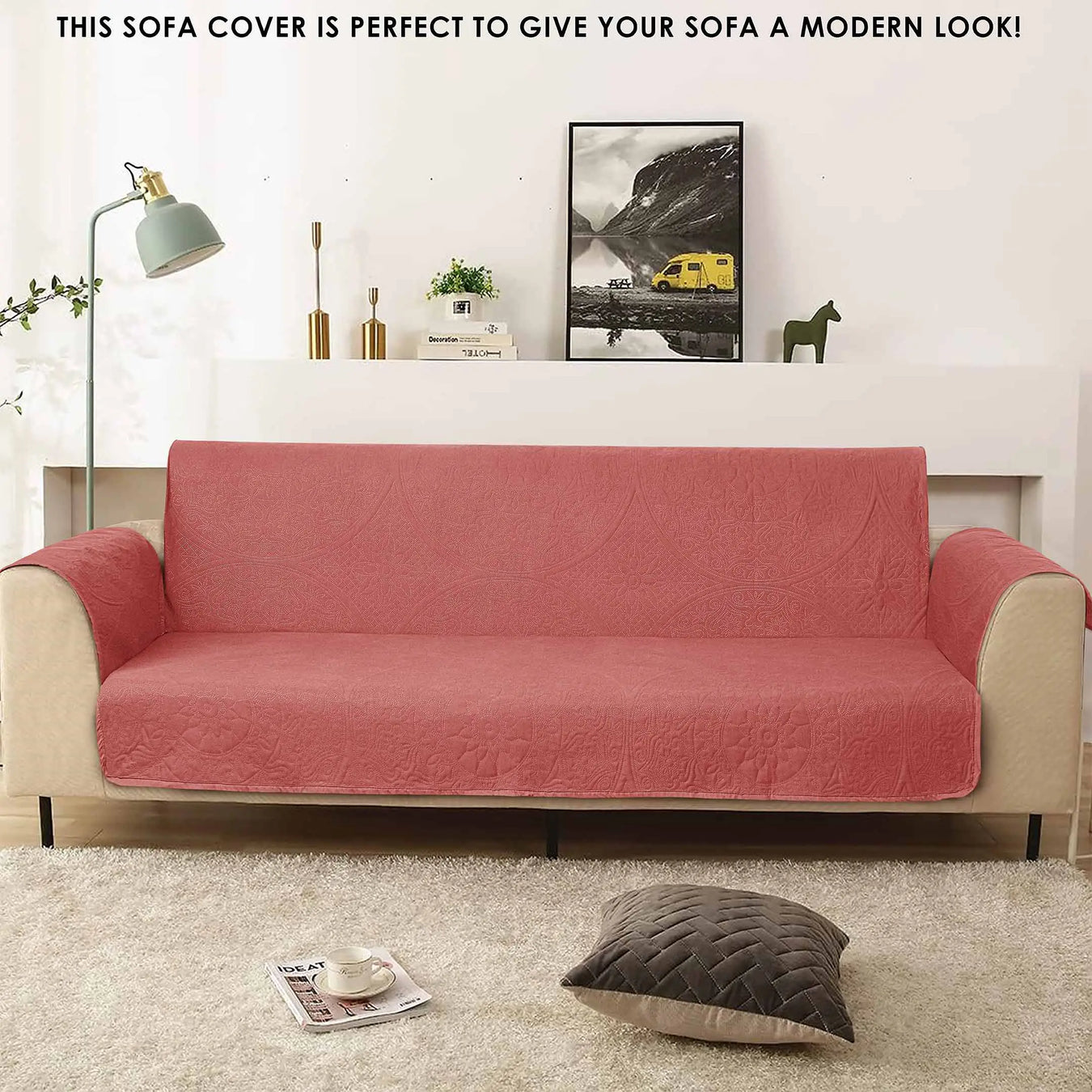 View full detailsReversible 100% Waterproof Quilted Sofa Cover Carrot-Pink