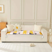 Elevate your living space with this vibrant geometric-patterned sofa topper, crafted from soft, quilted fabric for both style and comfort. Featuring bold hues of mustard yellow, blush pink, white, and charcoal gray in a playful pattern, this topper adds a contemporary flair to any room. Perfect for protecting your sofa from wear and spills, it’s also an inviting layer for extra coziness. Finished with charming tassel accents, this topper pairs beautifully with decorative cushions—including adorable flower-shaped and honeycomb-textured pillows—for a fresh, inviting look. Ideal for modern and minimal interiors.