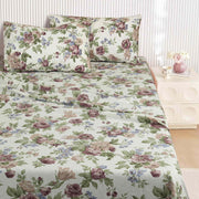 Infuse your space with bold elegance using this digital floral print featuring rich hues of purple and green. The intricate design combines modern digital detailing with the timeless charm of blooming florals, making it a striking centerpiece for your bedding ensemble. Crafted from soft, breathable fabric, this sheet offers luxurious comfort and a vivid artistic touch. Perfect for adding depth and character to both contemporary and gradient shading -inspired interiors.