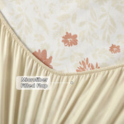 This ruffled fitted sheet brings a touch of elegance and coziness to your bedding. Designed with an all-over soft beige floral print, it features a gathered ruffle border that drapes beautifully around the edges for a romantic, vintage-inspired look. The bottom edge showcases a contrasting rust-red floral pattern, adding charm and uniqueness. Paired with matching pillow covers with frill details, this fitted sheet perfectly blends comfort with timeless style, making it an ideal choice for a graceful bedroom setup.