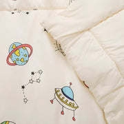 Blast off into dreamland with our adorable space-themed Little Astronaut Baby Comforter Set! Featuring little rockets, colorful planets, and charming starry details. Made from ultra-soft, breathable fabric, this set contains a cozy comforter, an embroidered pillow, and a matching printed bedsheet—ensures a snug and restful sleep for your little one. Crafted with premium-quality materials, it's gentle on delicate skin and built for long-lasting comfort.