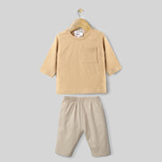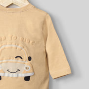 A cheerful two-piece outfit in soft sandy tones featuring a cute smiling car print with “Born to Ride” Puff printing on the back. Made from gentle, breathable cotton for comfort and style. Perfect for your little one’s playful adventures and every day wear.