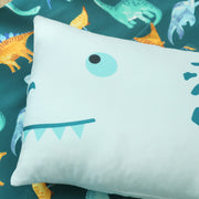 Turn bedtime into a prehistoric adventure with our Dino Dreams Crib Sheet. Featuring cheerful dinosaurs in vibrant orange, teal, and blue shades on a deep green base, this fitted sheet sparks imagination and joy. Crafted for comfort and cuteness, it comes with a matching dinosaur-themed character pillow that little explorers will love to cuddle.