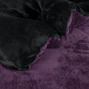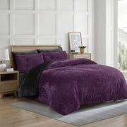 Fleece Bedsheet and Reversible Razaye 6pc Set Plum-Jet Black