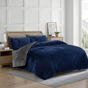 Fleece Bedsheet and Reversible Razaye 6pc Set Navy-Grey