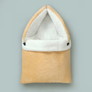 A warm and ultra-soft baby carry nest made with plush quilted fabric on the outside and a cozy Sherpa-style lining on the inside. The design includes a hooded top for added warmth and comfort, keeping the baby snug during naps or outings. Its neutral beige-orange tone makes it perfect for both boys and girls. Easy to use, lightweight, and ideal for winter months to ensure maximum warmth and safety for infants.