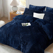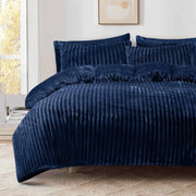 Jacquard Stripe Flannel Fleece 6pc Razaye Set-Navy