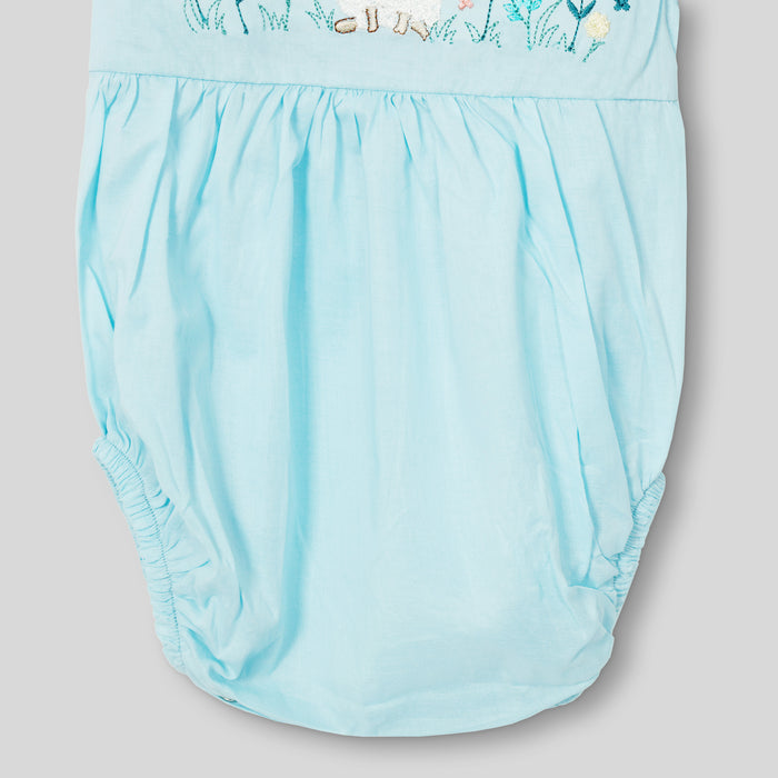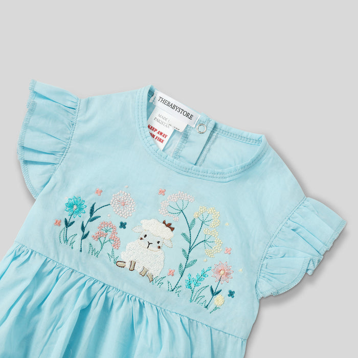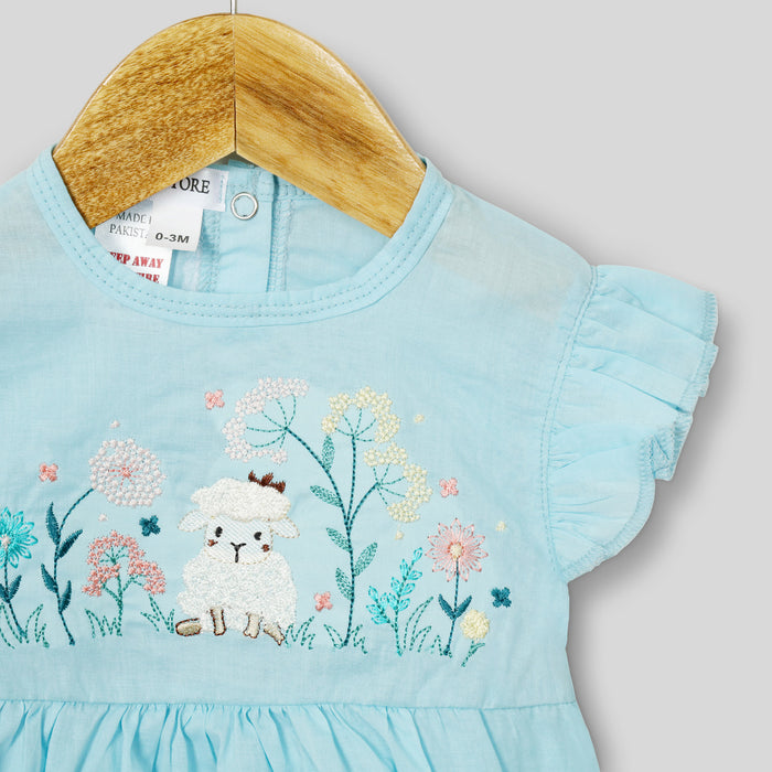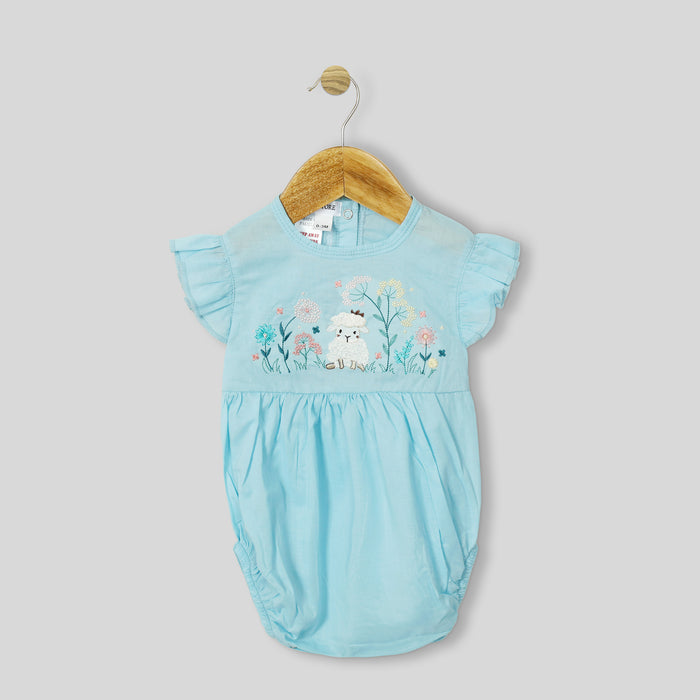 A charming blend of comfort and cuteness. Crafted from soft, breathable Lawn, this romper features an adorable sheep motif delicately embroidered with floral accents. Designed with practicality in mind, it's perfect for playtime, naptime, and every sweet cuddle in between.