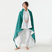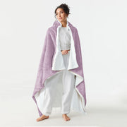 This perfectly draped fleece cape with a warm hood and soft sherpa inside is perfect to snuggle up during cozy winter nights.